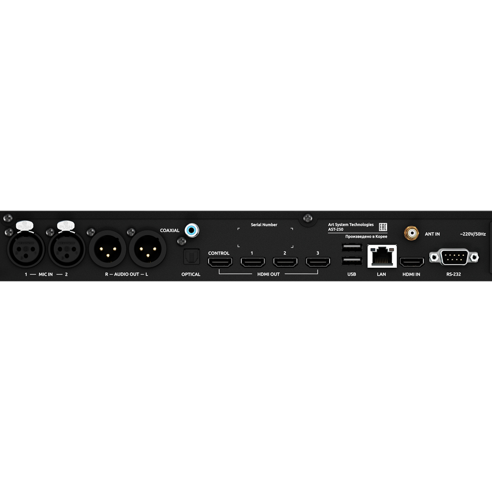 Поддержка Full HD видео в формате 1080p, три встроенных защищённых HDMI-порта для одновременного подключения нескольких экранов, плавное отображение видео без задержек, искажений и артефактов. Ещё? Пожалуйста! Сквозной видеоканал для подключения внешних источников фонового видео (например, видеокамеры) напрямую к AST-250 по HDMI, возможность добавлять собственные фоновые видеоклипы в высоком качестве, гибкие настройки видео. Ого! Это караоке-система AST-250!