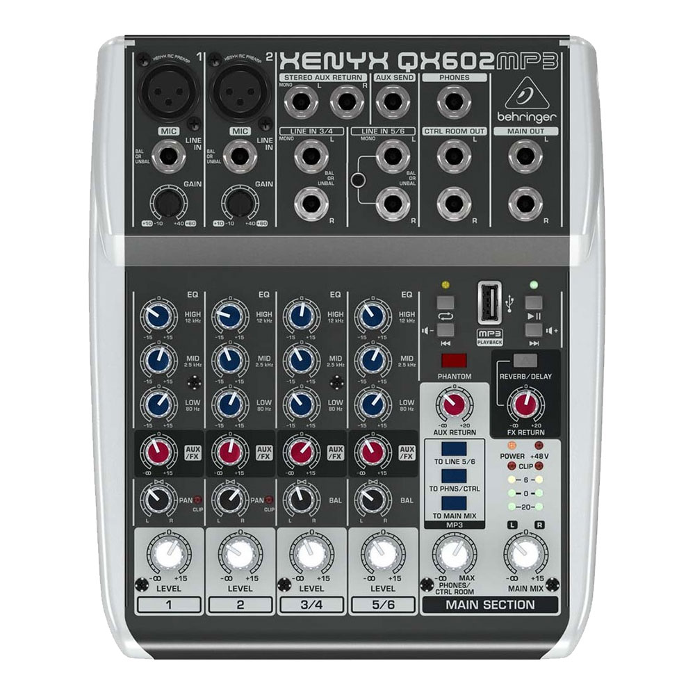 Ультракомпактный 6-канальный микшер XENYX QX602MP3 с 6 входами (2 микрофона, 2 стерео) позволяет вам без проблем получить высококачественный звук благодаря двум встроенным микрофонным предусилителям XENYX Mic с доступным фантомным питанием и ультра-музыкальными «Британскими» канальными эквалайзерами. Добавьте к этому высоко-производительный MP3-плеер и доступ к аудиофайлам с USB-накопителя, встроенный 24-битный стереофонический мульти-FX-процессор с пресетами для реверберации и задержки студийного класса, QX602MP3 является невероятно универсальным и удивительно доступным микшером!