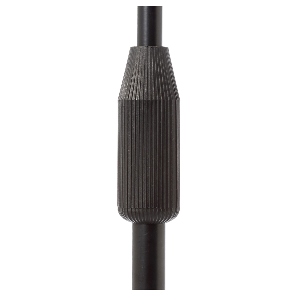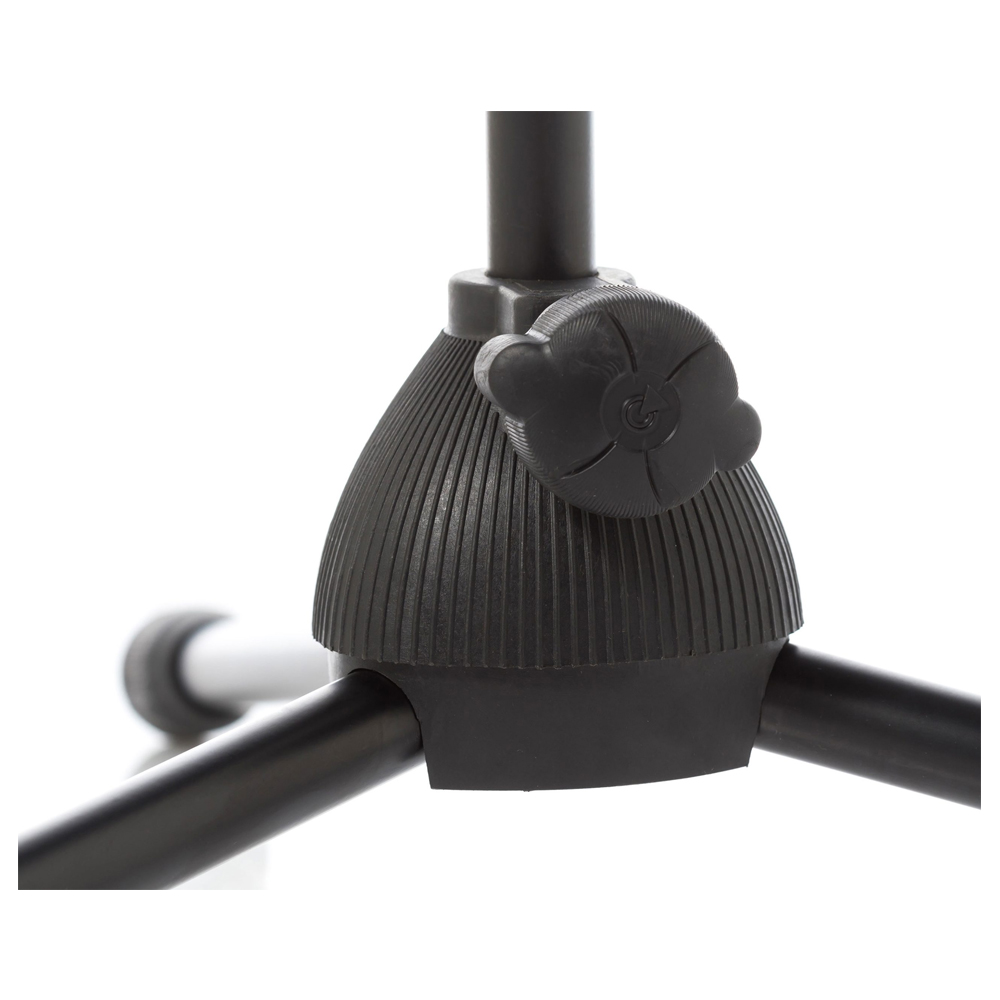 Микрофонная стойка типа «журавль» с изменением угла наклона с помощью одной кнопки; высота: 87 - 160 см; диаметр основания: 64 см; максимальный вес нагрузки: 3 кг; собственный вес: 2.3 кг; цвет: чёрный.