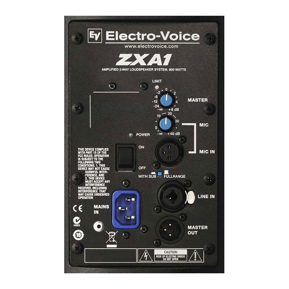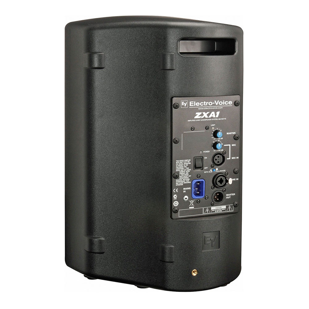 Органы управления акустикой, расположенные на задней панели, включают микрофонный вход с регулятором чувствительности, линейный вход, общий выход Master Out на разъеме XLR, переключатель режимов – широкодиапазонный или работа с сабвуфером, а также регулятор общего уровня сигнала Master Out. Корпус, изготовленный на основе полистирола, позволяет использовать ZxA1-90B в роли монитора с углом наклона оси 45 градусов, а также устанавливать на стойку, для чего внизу предусмотрен стакан со стандартным диаметром.