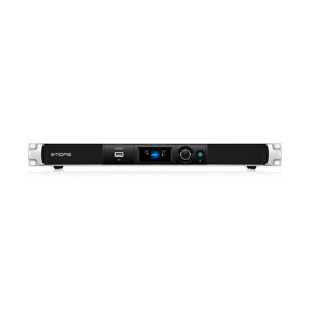 MIDAS M32С цифровой микшерный пульт, 40 каналов, 25 шин, 32х32 USB аудио интерфейс, 8 процессоров эффектов; два цифровых интерфейса AES50 с технологией Klark Teknik SuperMAC поддерживают передачу до 96 входных и столько же выходных каналов; возможность управления через Ethernet порт, возможность беспроводного управления с помощью MIDAS Apps для iPhone и iPad.