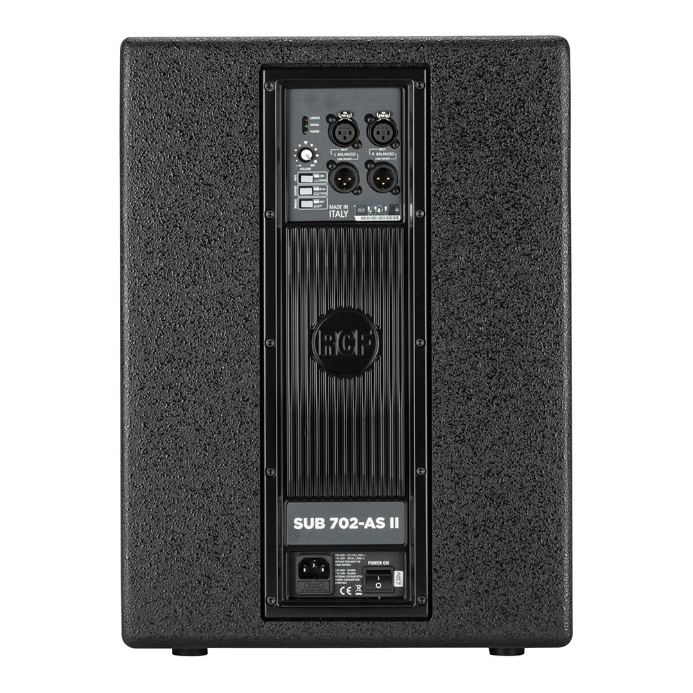 RCF SUB 702 AS II представляет собой очень компактный активный сабвуфер, оснащенный цифровым усилителем. Он идеально дополнит 8 или 10 дюймовую акустическую систему, в результате чего вы получите небольшой по размерам, но очень эффективный звуковой комплект. За счет малых габаритов сабвуфер RCF SUB 702-AS II очень легко доставить к месту проведения мероприятия, а встроенный цифровой стереофонический кроссовер с регулируемой частотой раздела упрощает настройку системы.
