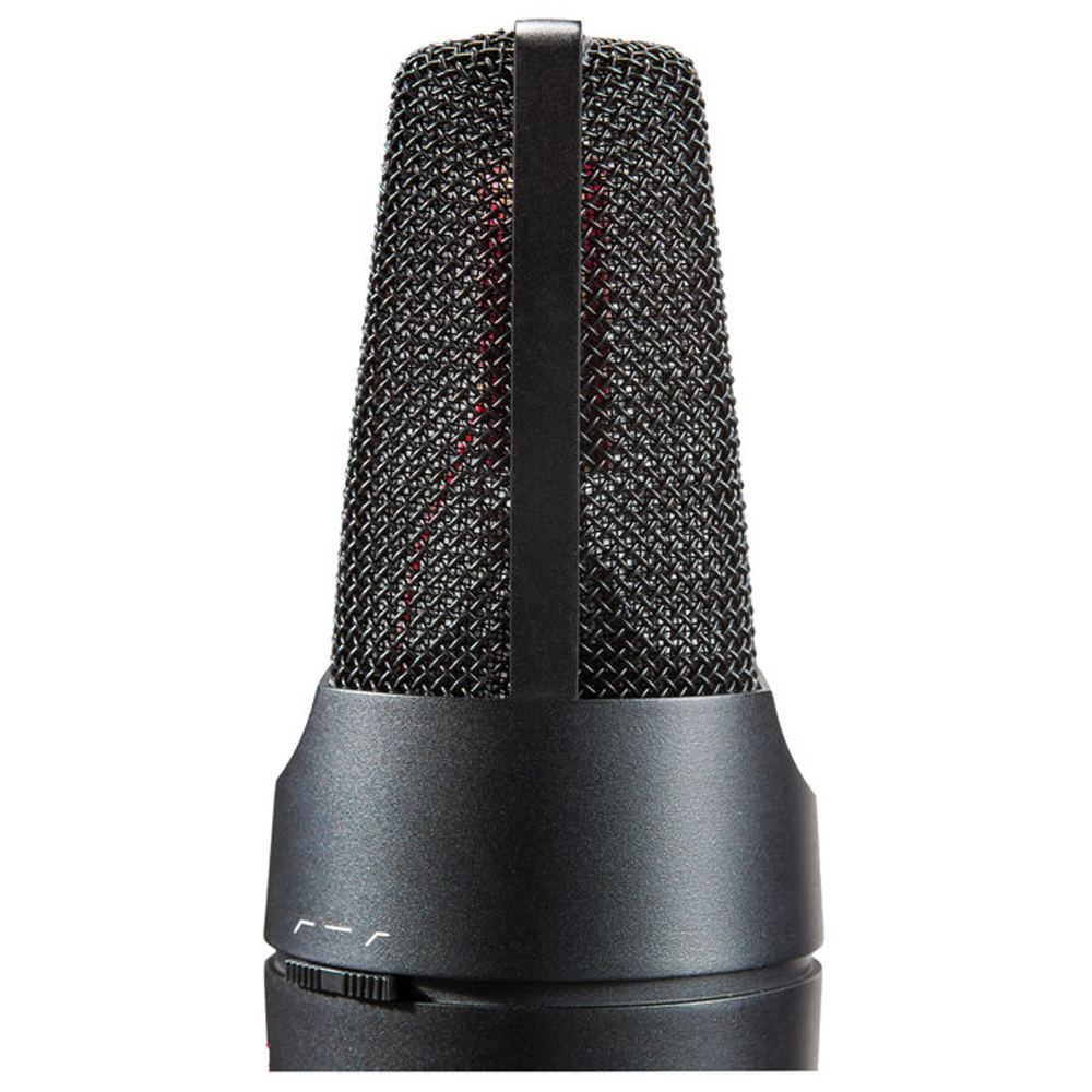 Конденсаторный студийный микрофон; диаграмма направленности: кардиоида; частотный диапазон: 20 Гц – 20 кГц; чувствительность: 30 мВ/Па (-30.5 dBV).