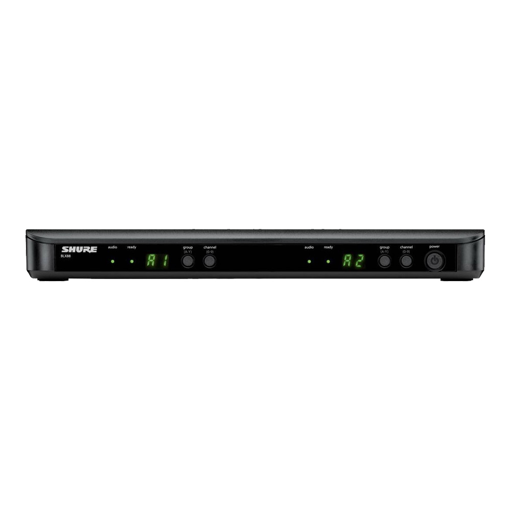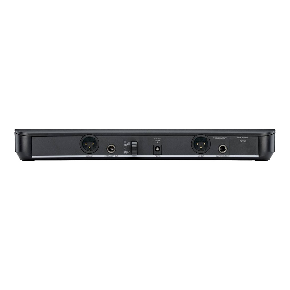 Универсальность BLX188 заключается в том, что если вам необходимо иметь несколько вариантов подключения (головная гарнитура и ручной микрофон), то вам не придется покупать отдельную радиосистему с нужным вам передатчиком, достаточно лишь докупить нужный передатчик, например поясной или головную гарнитуру (Headset) и подключить его к существующему приемнику. Такая возможность делает систему универсальной в использовании и значительно экономит ваши денежные средства при необходимости перестроения. Приемник BLX 88 имеет два приемника, которые работают на двух независимых каналах, что позволяет использовать одновременно два передатчика (для каждого отдельный аудио выход XLR/ ¼ Jack).