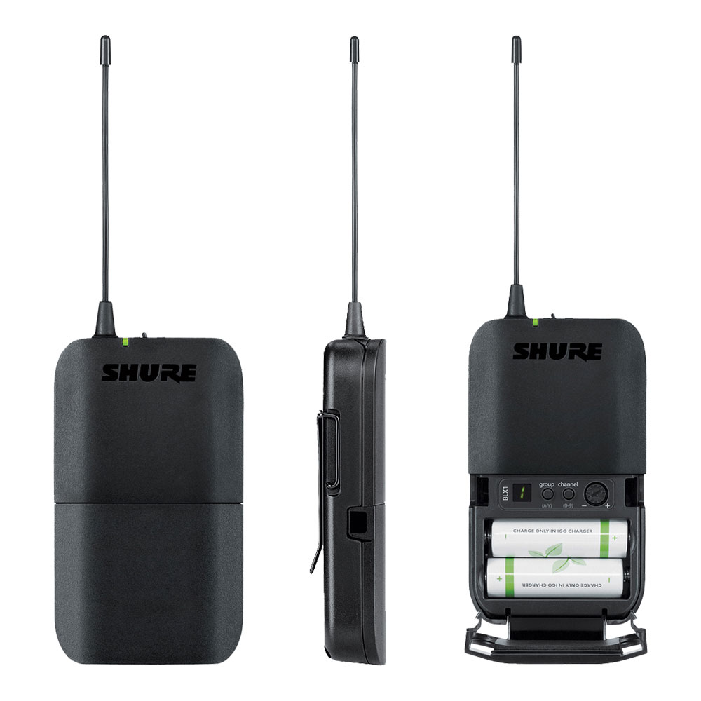 Аналоговая радиосистема BLX 188 производства компании Shure состоит из 3-х элементов – приемника BLX 88, и двух поясных передатчиков BLX 1. Во всех типах радиосистем передатчик является универсальным устройством и может быть исполнен в нескольких вариантах: встроен в ручной микрофон или как поясной передатчик для подключения петличного микрофона/головной гарнитуры/музыкальных инструментов с выходом ¼. В данном случае используется два поясных передатчика BLX 1, которые способны передавать сигнал в UHF диапазоне по одному из 10 фиксированных каналов (для каждого передатчика отдельный канал), на расстояние до 90 м (открытое пространство). В качестве элемента питания используются две батарейки АА типа. В качестве приемника используется BLX 88, который принимает сигнал с передающего устройства (передатчика) и передает его на микшерный пульт или акустическую систему через параллельный аудио выход XLR/ ¼ Jack.