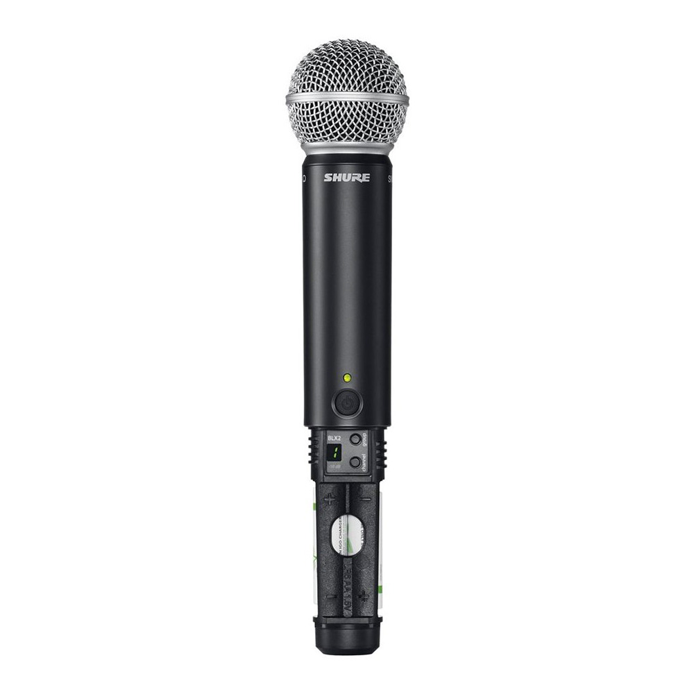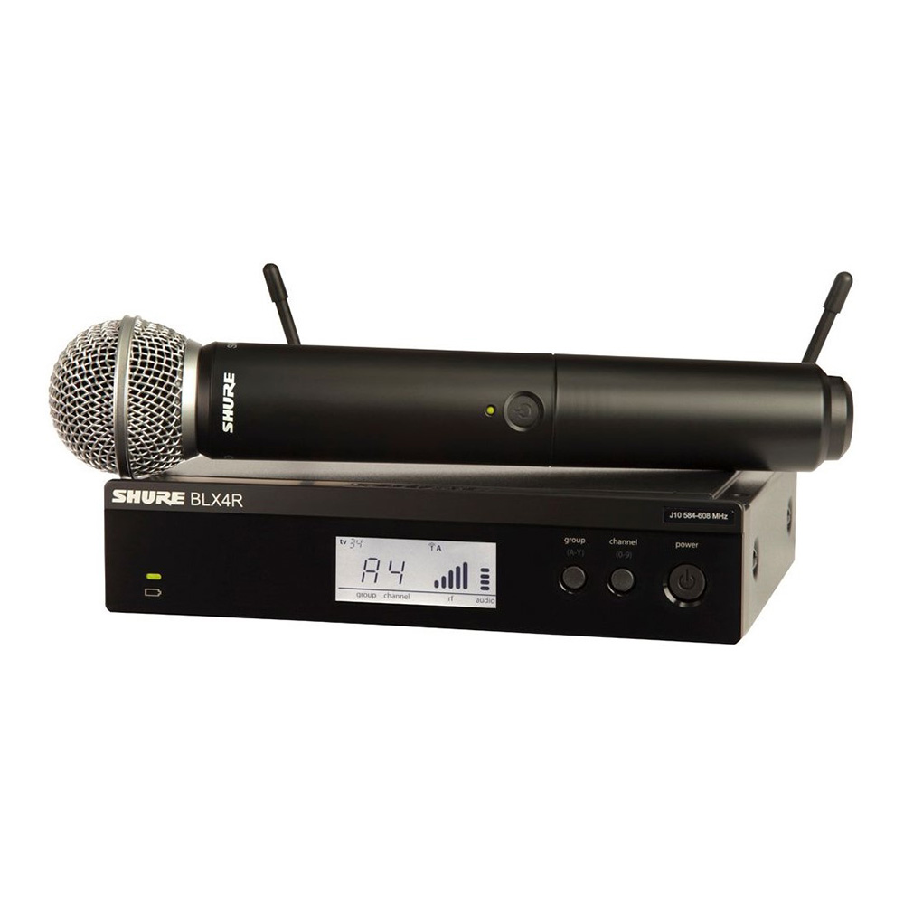 У него достаточно простой функционал с интуитивно понятным управлением, а внутренняя антенна управляется встроенным микропроцессором. Быстрое сканирование доступно с помощью всего одной кнопки, и оно позволяет моментально выбрать свободную частоту с наилучшими параметрами. На корпусе расположены светодиодные индикаторы, которые показывают наличие сигнала и клиппирование. ЖК-дисплей отображает рабочую частоту. Ресивер оснащен двумя выходами: на разъемах XLR и 1/4" TS Jack. Рабочий диапазон составляет 91 метр. Передатчик BLX2/SM58 в комплекте Shure BLX24RE/SM58 – беспроводной, ручной, с динамическим кардиоидным капсюлем, позаимствованным от известного микрофона SM58. Кардиоидная диаграмма направленности даёт хорошее усиление перед возникновением обратной связи, а её равномерный шаблон – превосходный захват звука в узкой области.